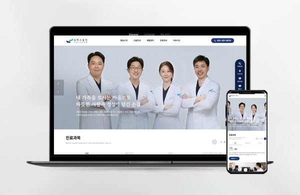 본 포트폴리오는 실제 제작 사례로, 일부 사이트는 운영 종료 또는 리뉴얼로 인해 현재 접속이 제한될 수 있습니다.재활·요양 전문 병원 반응형 홈페이지 제작 사례